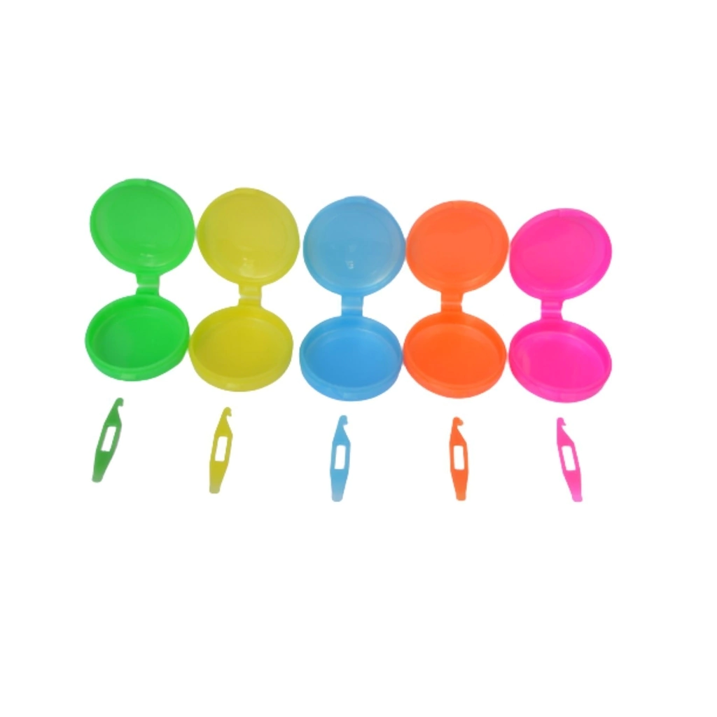 Produto acompanha uma caixa redonda plástica para elástico intrabucal e um gancho para a remoção e inserção de elástico intrabucal.